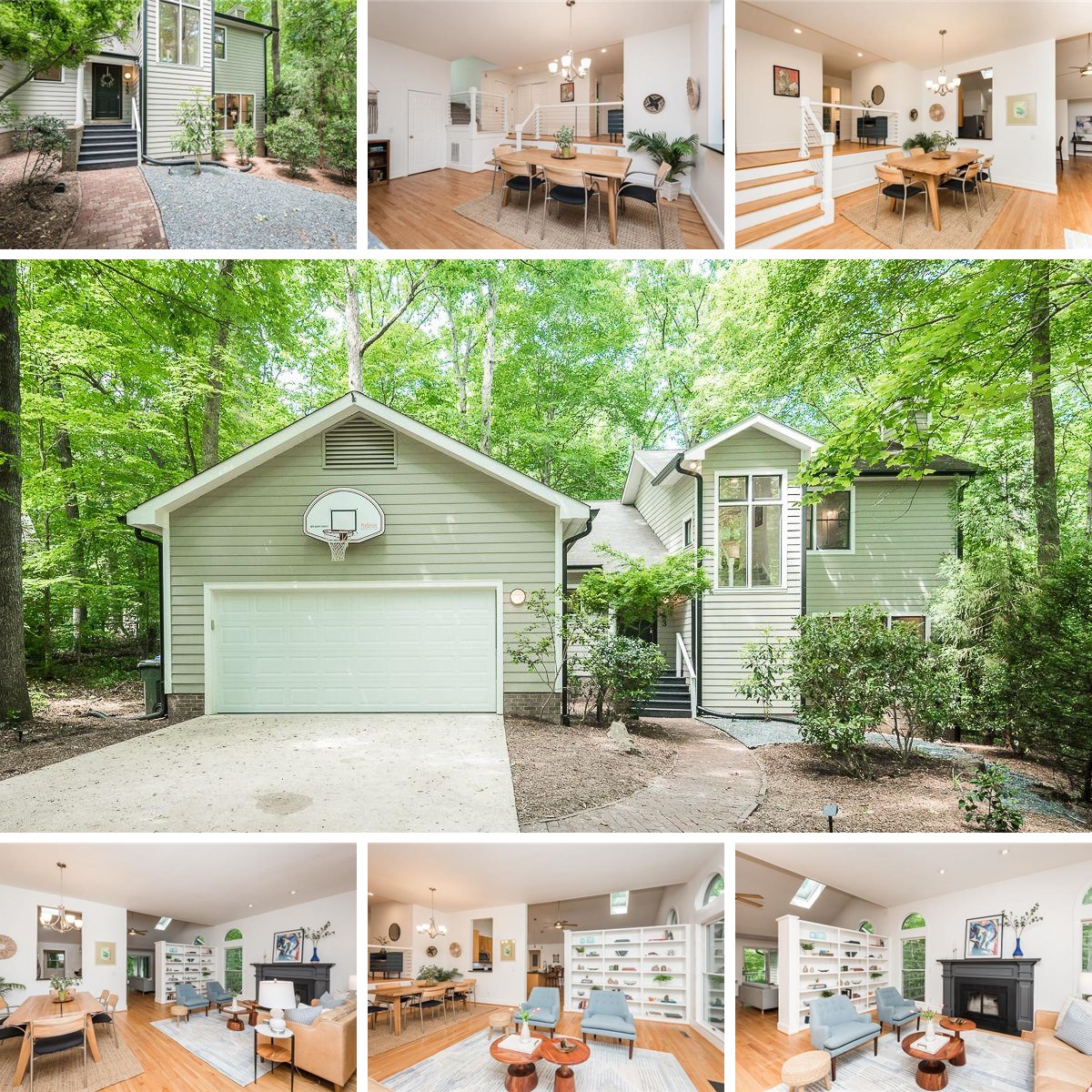 Welcome to 103 Harrington Point, a beautifully situated Zinn Built 4-bedroom, 2.5-bathroom home on a wooded cul-de-sac. Step through the front door and experience an elevated view of the expansive living room, fireplace and dining area. The open concept kitchen with high ceilings and skylights flows into a family room complete with a cozy fireplace. Take in year-round nature views in the large, window wrapped, sunny family room overlooking Morgan Creek, complete with built-in speakers and surround sound. Upstairs, the generous primary suite includes a walk-in shower, dual vanities, a sitting area, and two walk-in closets. Located about 2 miles from UNC, you will enjoy easy access to Chapel Hill, Carrboro, bus lines, greenway trails and more.